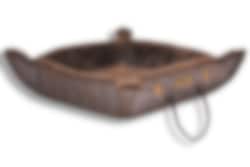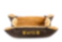 Hundebett mit Innenseite aus kuscheligem Lammfell und Außenseite aus der klassischen Steppung von EA Mattes. Das Hundebett von EA Mattes verfügt über praktische Tragegriffe aus Leder, die das Mitnehmen des Hundebetts für unterwegs ermöglichen. "Mattes" ist auf die Vorderseite des Bettes gestickt, sowie zwei dekorative Logos.