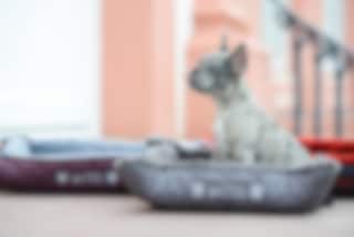Unglaublich weiches und kuscheliges Hundebett mit grauer Steppung und grauem Schaffell (Titan), von EA Mattes.