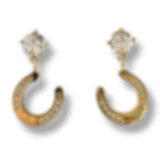 Ein Paar schlichte und leichte Ohrringe, die zeitlose Eleganz mit dezenten Reitsportdetails verbinden. Gold