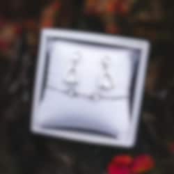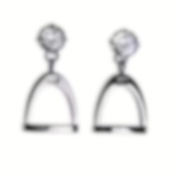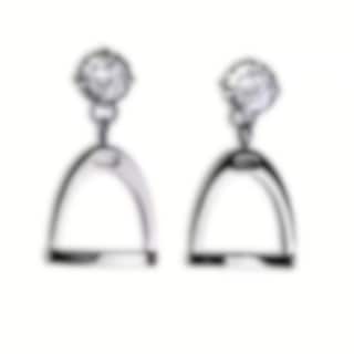 Ein paar stilvolle und leichte Ohrringe, die zeitlose Eleganz mit subtilen Details aus dem Reitsport verbinden. Silber