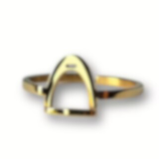Ein schöner und detailreicher Ring mit einem Steigbügel aus glänzend goldplattiertem Stahl. Gold