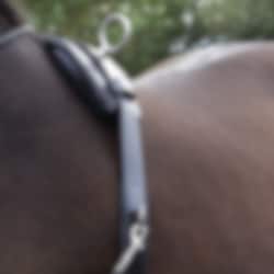 Das Einzigartige an diesem Gurt ist, dass er leicht und flexibel ist und allein oder auf einem Sattel verwendet werden kann. Die Ringe sind groß genug, damit Fahrzügel oder Longierleinen problemlos hindurchpassen. Der Longier- und Fahrgurt hat auf jeder Seite des Gurts zwei Befestigungsschlaufen, an denen ein Hilfszügel oder eine Longierleine/ein Fahrzügel befestigt werden kann. Das Gurtteil selbst hat einen dreifachen Gummizug, der den Longier- und Fahrgurt flexibel, aber dennoch fest genug macht, damit er an Ort und Stelle bleibt. Die Pads sind so groß wie nötig, um dem Gurt Stabilität zu verleihen, während die Polsterung macht, dass er weich am Pferd anliegt.