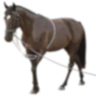 Dies ist eine Longierhilfe, die dem Pferd hilft, mit seiner Rückenmuskulatur zu arbeiten und den Bewegungen des Pferdes folgt. Diese Longierhilfe aus baumwollgeflochtenem robustem Seil schützt das Pferd vor Scheuern. Er passt sich der Position des Pferdes an, sodass der Druck beim Gebiss gleichmäßig auf beiden Seiten verteilt wird. Am Übergang zwischen dickerem und schmalerem Teil befindet sich ein Metallring, der die Longierhilfe in Position hält und auch zum Einspannen verwendet werden kann.
