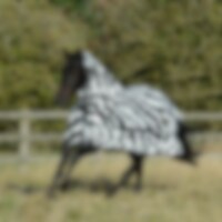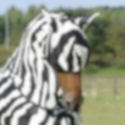 Sie lässt sich leicht mit einem Klettverschluss befestigen und schützt vor Insekten und UV-Strahlen. Zebrastreifen sind eine neue Option, um Fliegen davon abzuhalten, das Pferd zu irritieren. Es wird angenommen, dass es der Kontrast in den Streifen zwischen Schwarz und Weiß ist, der die Fliegen davon abhält, darauf zu landen. In den bisher durchgeführten Studien wird die Theorie durch das erzielte Ergebnis gestützt, d.h. weniger Fliegen auf dem Pferd.