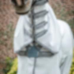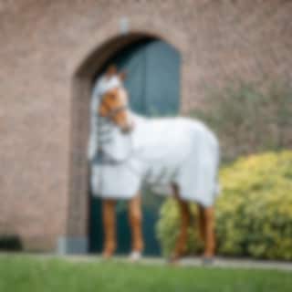 Die Horseware Amigo® Ripstop Hoody Fliegendecke ist mit einem integrierten Halsteil ausgestattet, der bis über die Ohren reicht, sowie mit einer Bauchplatte und einer extra langen Schweifklappe, für einen umfassenden Schutz vor Insekten und UV-Strahlung.