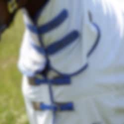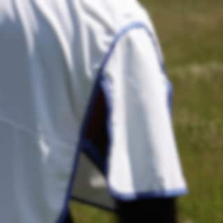 Die Decke verfügt über einen integrierten Halsteil, eine Bauchklappe und eine große Schweifabdeckung, die für eine großzügige Abdeckung des gesamten Körpers sorgen. Das strapazierfähige Obermaterial schützt vor Sonnenbrand und Ausbleichen, während Mesh-Einsätze für eine gute Luftzirkulation sorgen. Die Decke wird vorne mit Schnallen geschlossen, hat einen verstellbaren Schweifriemen und das Innenfutter im Schulterbereich hilft, das Risiko von Scheuerstellen zu reduzieren.
