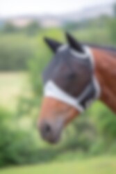 Fliegenmaske mit Ohren und Löchern an der Stirn für den Pony.