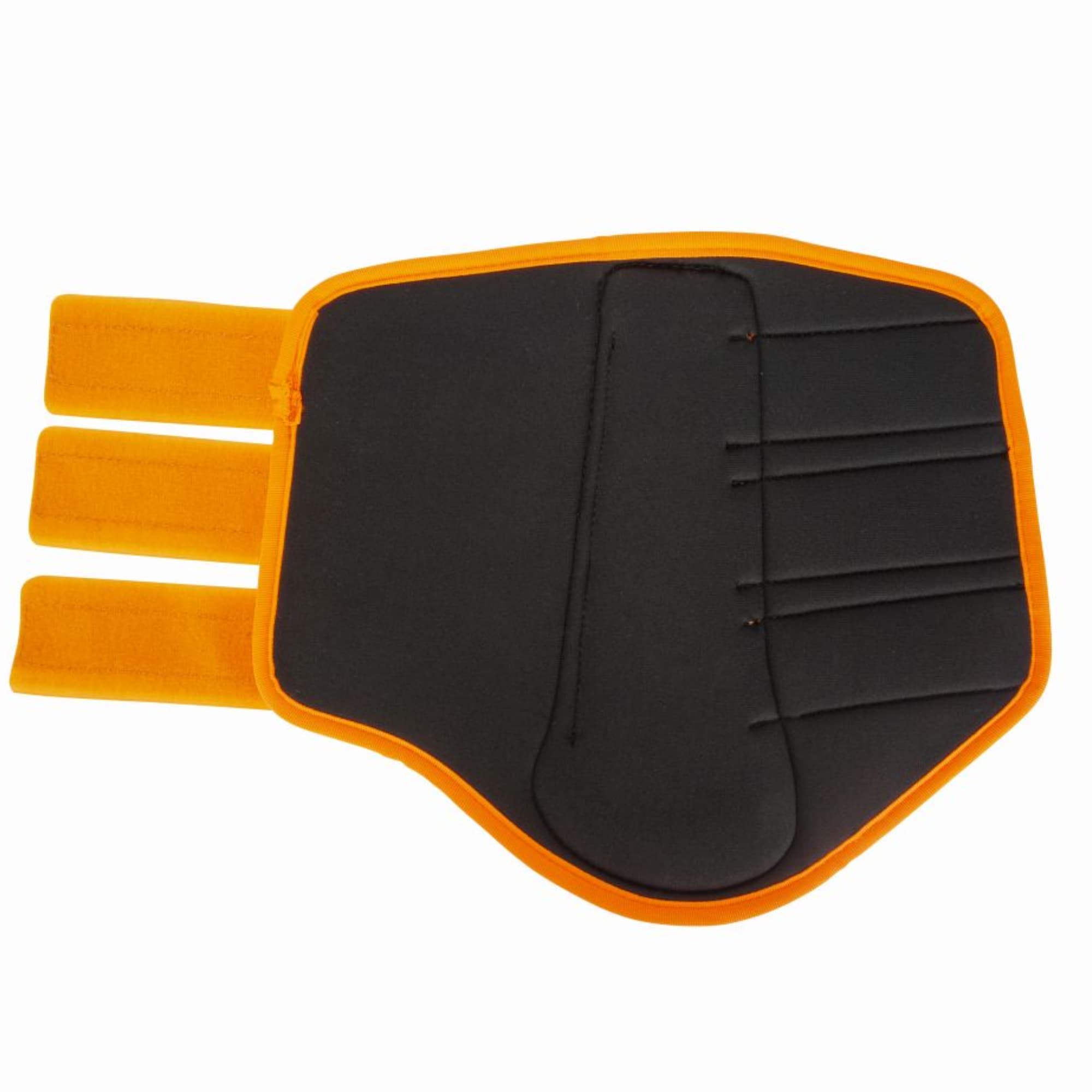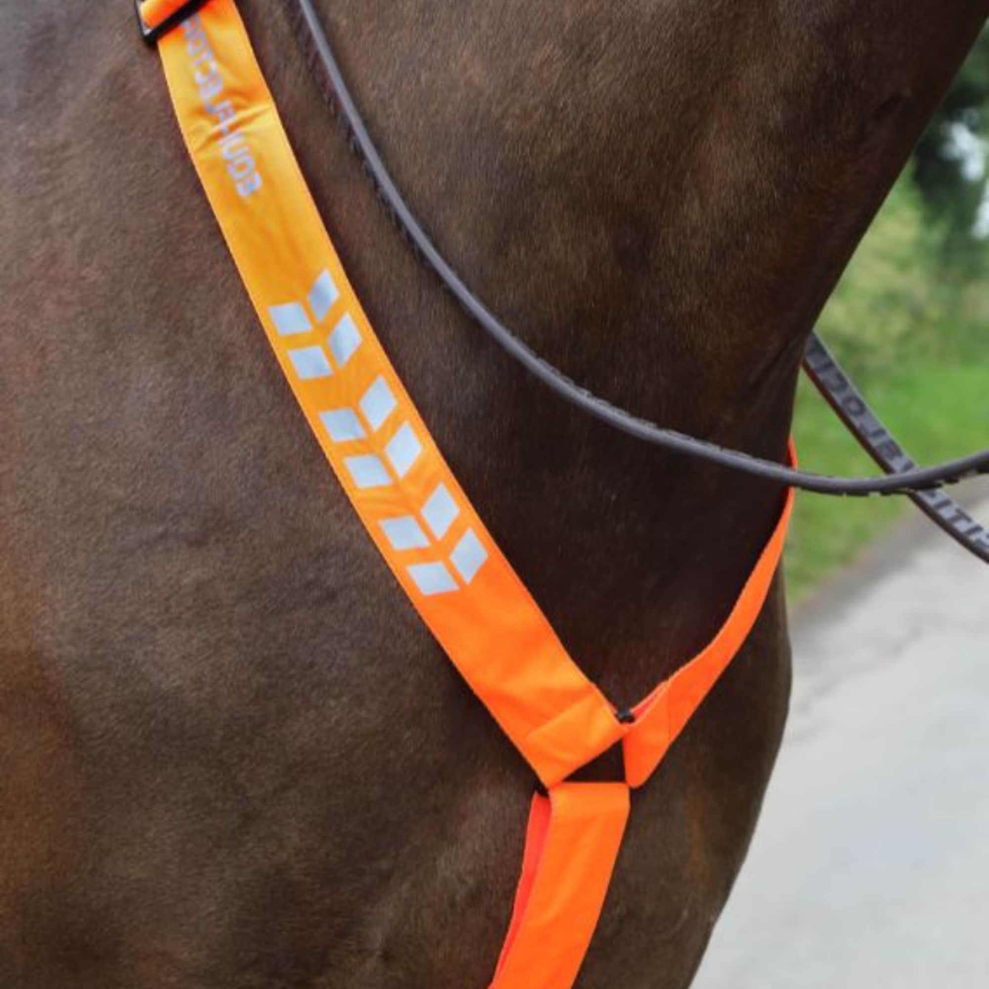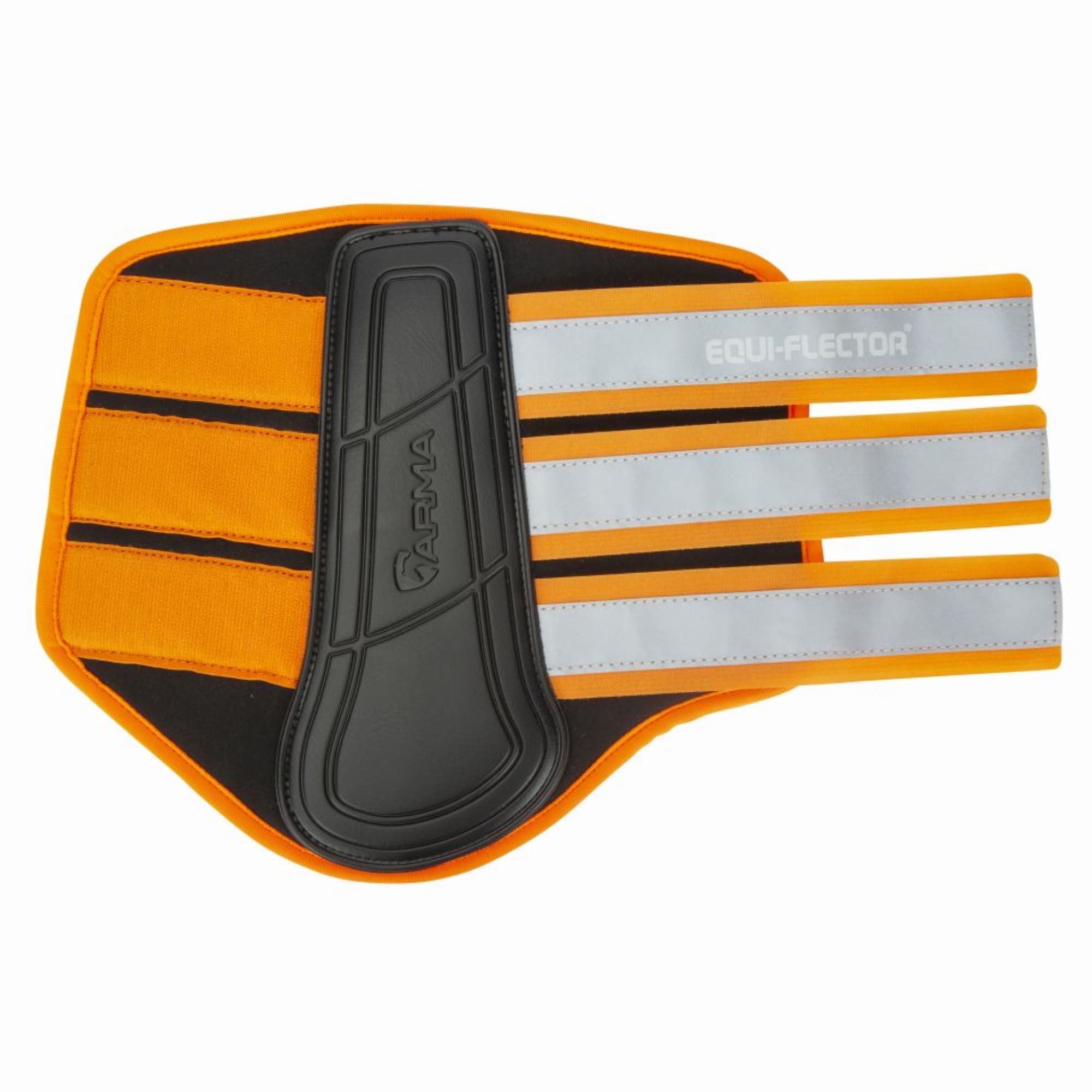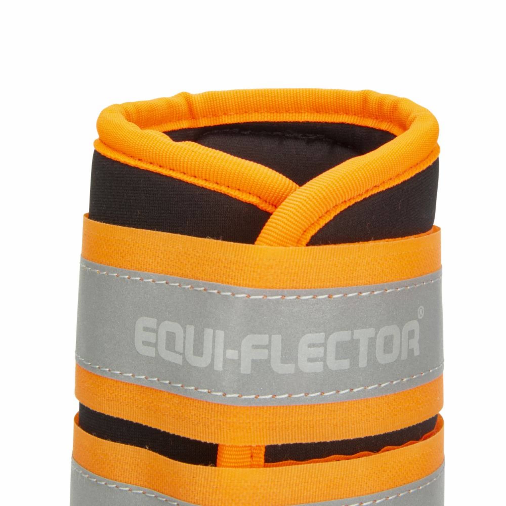 Reflektierende Gamaschen aus Neopren für Pferde. Sorgen Sie für zusätzliche Sichtbarkeit und Schutz Ihres Pferdes mit diesen strapazierfähigen Neopren-Gamaschen mit Reflexdetails. Orange.