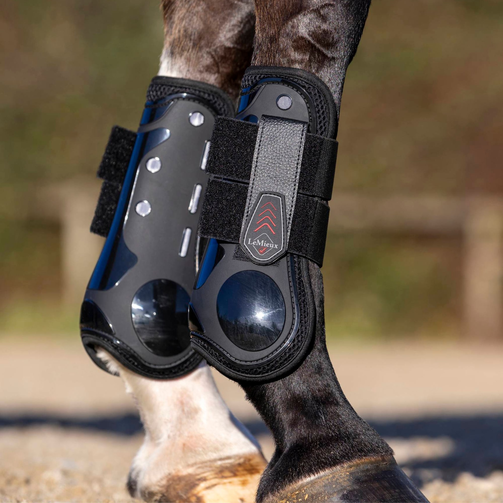 Die LeMieux Derby ProJump Tendon Boots in Schwarz sind leichte und gut belüftete Sehnenschützer zum Schutz der Pferdesehnen bei Training und Wettkampf.