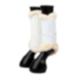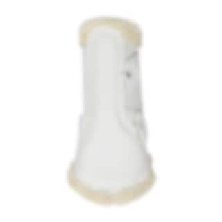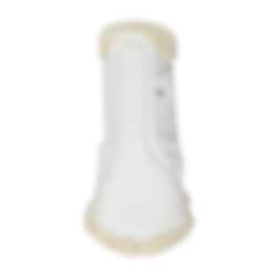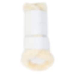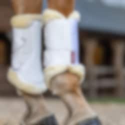 Weiße Fleece Edged Mesh Brushing Boots, Gamaschen von LeMieux. Werden paarweise verkauft und passen sowohl an die Vorder- als auch an die Hinterbeine.