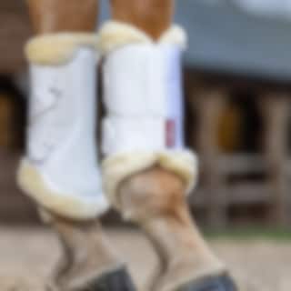 Die Gamaschen werden paarweise verkauft und passen sowohl an die Vorder-, sowie an die Hinterbeine des Pferdes.