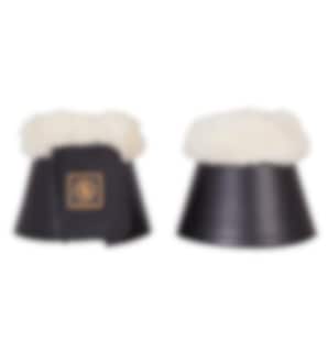 Stilvolle praktische Boots aus schwarzem Kunstleder mit einem weichen Schaffellsaum oben. Hergestellt aus Neopren und mit einem breiten Klettverschluss.