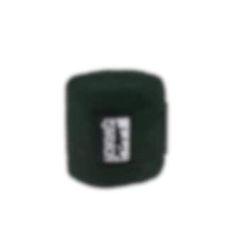 Dunkelgrüne, gestrickte Stallbandagen von Eskadron mit starkem Klettverschluss.