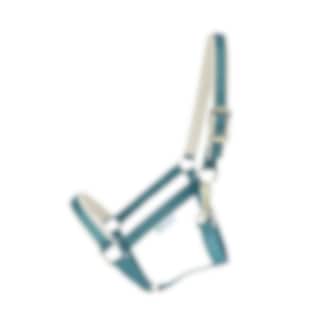 Das Textilhalfter Dublin von Bucas ist ein erschwingliches Textilhalfter in guter Qualität mit weichem Futter über Nase und Nacken. Erhältlich in vielen schönen Farben, hier in Blaugrün/Silber.