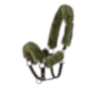 Ein Halfter aus Lammfell von absolut höchster Qualität. Das Lammfell-Halfter von EA Mattes ist schwarz mit Lammfell in Oliv und verfügt über elegante silberne Beschläge.