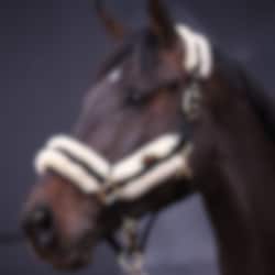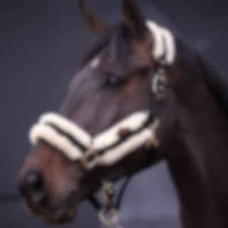 Schöner Nylonhalfter mit naturfarbener Polsterung aus künstlichem Schaffell auf der Innenseite der Riemen (zum Pferd hin). Dieser Textilhalfter von Kentucky fällt wirklich aus der Reihe und steht dem Pferd, das ihn tragen darf. Der Schaffellhalfter von Kentucky ist in den Größen Full und Cob auf Lager.
