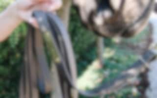 Wenn Sie ein unordentliches Pferd führen, ist es wichtig, dass Sie davonkommen können, ohne Ihr Pferd loslassen zu müssen. Daher ist es wichtig, einen ausreichend langen Strick zu haben, vielleicht sogar eine Longierleine.