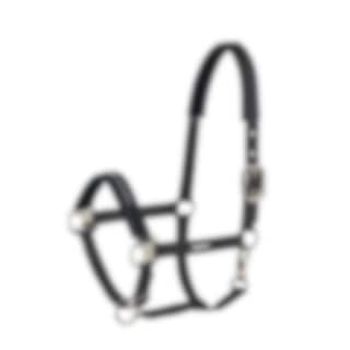 Superschönes schwarzes Halfter aus doppelt gewebtem, strapazierfähigem Stoff, weich gefüttert über Nase und Genick mit Metallschnallen. Das Halfter ist um die Nase und dem Genick verstellbar, um die beste Passform für Ihr Pferd zu gewährleisten. Das Eskadron Halfter verfügt über silberfarbene Schnallen und Beschläge sowie das Logo auf dem Nasenhalfter in einem silberweißen Ton.