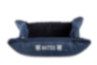 Lucky ist ein unglaublich weiches und kuscheliges Hundebett mit dunkelblauer Steppung und dunkelblauem Lammfell von EA Mattes.