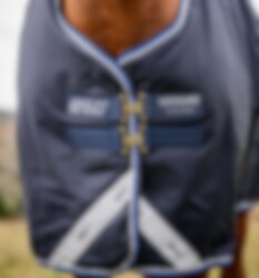 Amigo Bravo 12 Turnout Medium ist eine wasserdichte und atmungsaktive Außendecke mit 250 g Fütterung, die das Pferd trocken hält, ohne dass es zu heiß wird oder schwitzt. Die Steppdecke besteht aus 1200D Polyester, wodurch die Decke langlebig ist. Die Innenseite der Decke besteht aus glänzendem Polyester, um das Risiko von Scheuern zu minimieren. Die Decke wird mit zwei Schultergurten und zwei Bauchgurten zugeknöpft. Farbe Marine / Silver Die Amigo Bravo 12 Decke ist mit dem Horseware-Liner-System kompatibel und es ist auch möglich, ein separates Halsteil für die Decke zu kaufen.