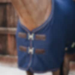 Diese Cooler Fleece Rug hat stylische Lederdetails, künstliches Lammfell am Widerrist und stylische Brustschnallen, die dieser Cooler-Decke einen luxuriösen Look verleihen. Die Fleecedecke hat zwei D-Ringe und einen Nylonriemen, der unter dem Schweif hergeht, um die Decke an Ort und Stelle zu halten.
