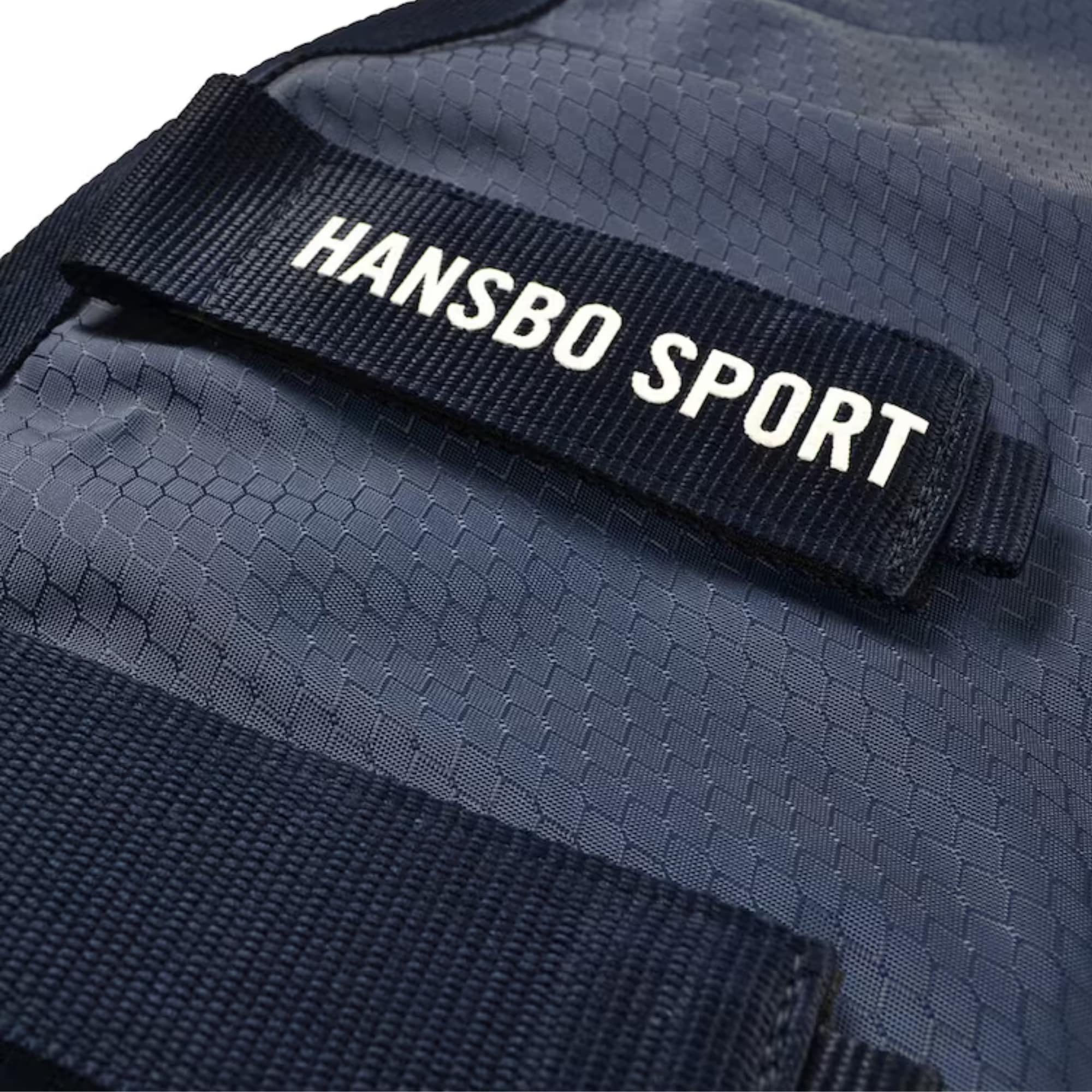 Halsdecke HS Solid in Marineblau ist ein ungefüttertes Halsteil aus Diamond Ripstop 600 Denier mit glänzendem Nylonfutter. Ausgestattet mit doppelten Klettverschlüssen und dekorativem Hansbo Sport-Silikonlogo. Kompatibel mit der HS Solid Regendecke.