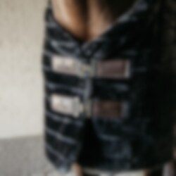 Trotz seiner Dicke ist der Quilt sehr leicht. Fake Fur Stalldecke hat abnehmbare Kreuzgurte und Vorderverschlüsse mit stilvollen Kunstlederdetails.