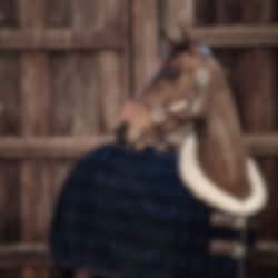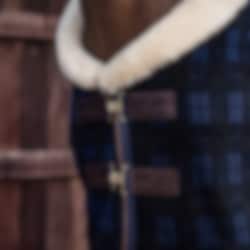 Unglaublich schöne und hochwertige Fleecedecke mit einem dekorativen und bequemen Kragen aus Kunstfell um den gesamten Halsauschnitt herum. Diese Fleecedecke ist die perfekte Schweiß- und Transportdecke, da sie Feuchtigkeit ableitet und das Pferd warm und trocken hält. Darüber hinaus ist sie unglaublich elegant mit Kunstlederdetails in Braun und dezenten Kentucky-Logos.