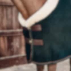 Unglaublich schöne und hochwertige Fleecedecke mit dekorativem und bequemem Kragen aus Kunstfell, der sich über den gesamten Hals erstreckt. Diese Fleecedecke ist die perfekte Abschwitz- und Transportdecke, da sie Feuchtigkeit abgibt und das Pferd warm und trocken hält. Dazu unglaublich stylisch mit Kunstfell-Details in Braun und dezenten Kentucky-Logos.