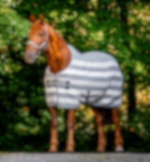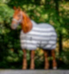Mit ihrem klassischen Newmarket-Streifenmuster vereint die Decke zeitlose Eleganz mit funktionaler Praktikabilität, was diese Decke zu einem stilvollen Begleiter sowohl für den Stall als auch für den Turnierplatz macht.