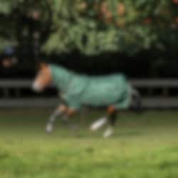 Freedom Turnout verfügt über eine 600-Denier-Ripstop-Außenseite und einen Halsteil der nicht abnehmbar ist. Diese Decke ist ungefüttert und hat ein seidenartiges Futter, das ein Wundscheuern verhindert.
