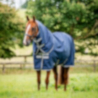 Amigo® Ripstop Plus 900 Turnout (0g Light) - Ungefütterte, marineblaue Regendecke mit Hals von Horseware.