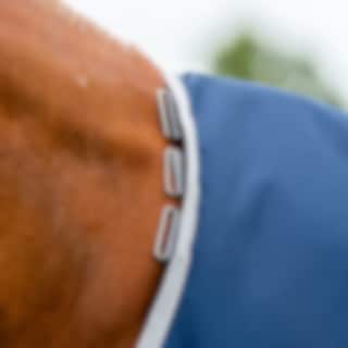 Diese leichte Weidedecke verfügt über einen geraden, doppelten Frontverschluss, Kreuzgurte und vorne Beinausschnitte für mehr Bewegungsfreiheit. Schweiflatz und Schweifriemen sorgen für einen sicheren Sitz. Ein abnehmbares Halsteil ist im Lieferumfang enthalten.