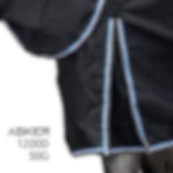 Asker Turn Out Rug SN – 50g in Schwarz ist eine funktionelle und langlebige Outdoor-Decke, die sich hervorragend für den täglichen Gebrauch bei unterschiedlichen Wetterbedingungen eignet. Die Decke besteht aus strapazierfähigem 1200-Denier-Material und bietet eine Wasserdichtigkeit von 3000 WP in Kombination mit guter Atmungsaktivität, was zu einem angenehmen Klima für das Pferd beiträgt.