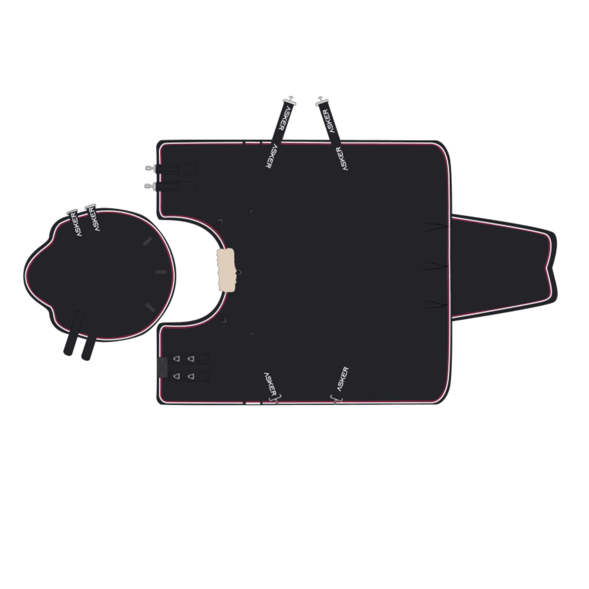 Dieses Modell wird mit passendem Halsteil geliefert, sodass die Decke je nach Bedarf mit oder ohne Hals verwendet werden kann. Dank getapter Nähte, tiefen Vorderhandfalten und einem großen Schweiflatz erhält das Pferd sowohl Bewegungsfreiheit als auch zusätzlichen Schutz.
