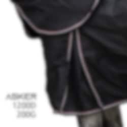 Asker TO Plus 1200D 200 g in Schwarz ist eine strapazierfähige Regendecke, die Ihr Pferd zu jeder Jahreszeit vor Nässe und Wind schützt. Die Decke besteht aus extra robustem 1200-Denier-Material, das besonders widerstandsfähig für Pferde ist, die sich viel auf der Weide bewegen. Mit einer Wassersäule von 3000 WP und sehr guter Atmungsaktivität bleibt das Pferd auch bei längeren Regen- oder Feuchtperioden trocken und komfortabel.