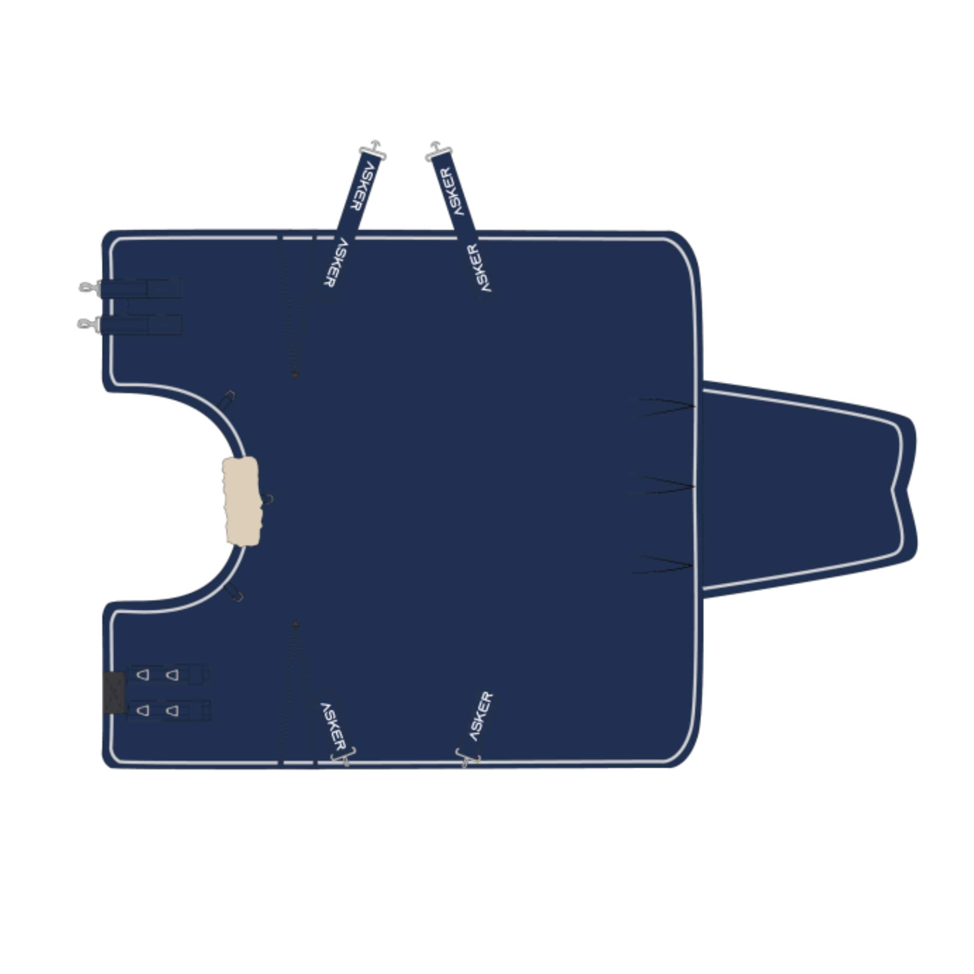 Asker Turn Out Rug SN 0g in Navy ist eine wasserdichte Outdoordecke ohne Halsteil. Die Decke hat eine gute Atmungsaktivität, eine hervorragende Passform und kann mit einem separat erhältlichen Halsteil ergänzt werden.