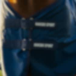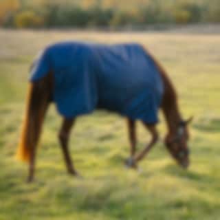 HS Solid Regendecke in Marineblau ist eine ungefütterte Regendecke aus robustem Diamond Ripstop 600 Denier mit weichem Kunstfell am Widerrist. Halsteil separat erhältlich.