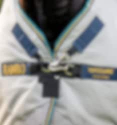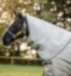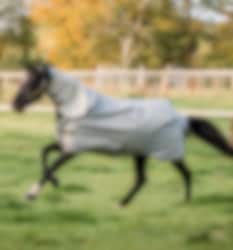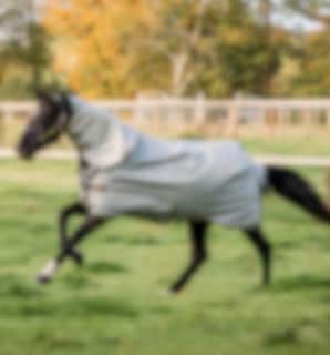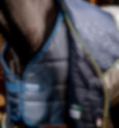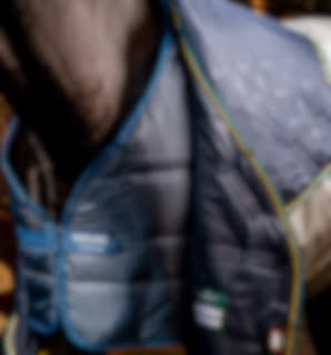Diese Decke besteht aus einer 100-Gramm-Außendecke und zwei Innenfutter mit 100 bzw. 300 Gramm Füllung. Die Decke verfügt außerdem über ein Surfit-Neck-Design mit V-Front-Verschluss, um dem Pferd gute Bewegungsfreiheit zu geben.