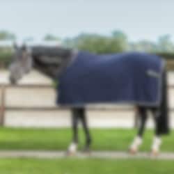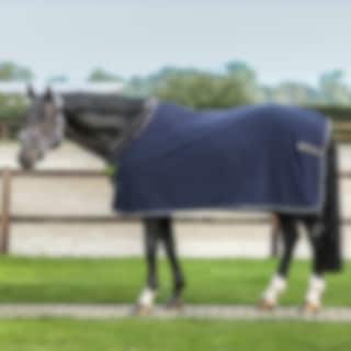 Diese Fleecedecke mit 400g Fleece ist ideal für Frühling und Herbst. Die Decke ist marineblau mit einem eleganten Kunstpelzkragen und kontrastierendem grauen Piping. Dadurch können Sie die Decke mit anderen Produkten aus der Show-Line-Kollektion von Bucas kombinieren.
