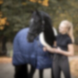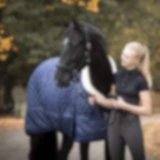 Super schöne marineblaue 200g Stalldecke mit kuscheligem Kunstfellkragen.