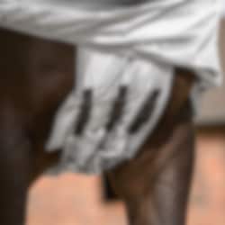 Der feste Halsteil und die breite Bauchlatz bieten umfassenden Schutz für die Bereiche, in denen Ekzeme am häufigsten auftreten. Elastische Partien an Schulter und Genick sorgen für gute Bewegungsfreiheit und helfen der Decke, auch bei Bewegung auf der Weide bequem zu sitzen.