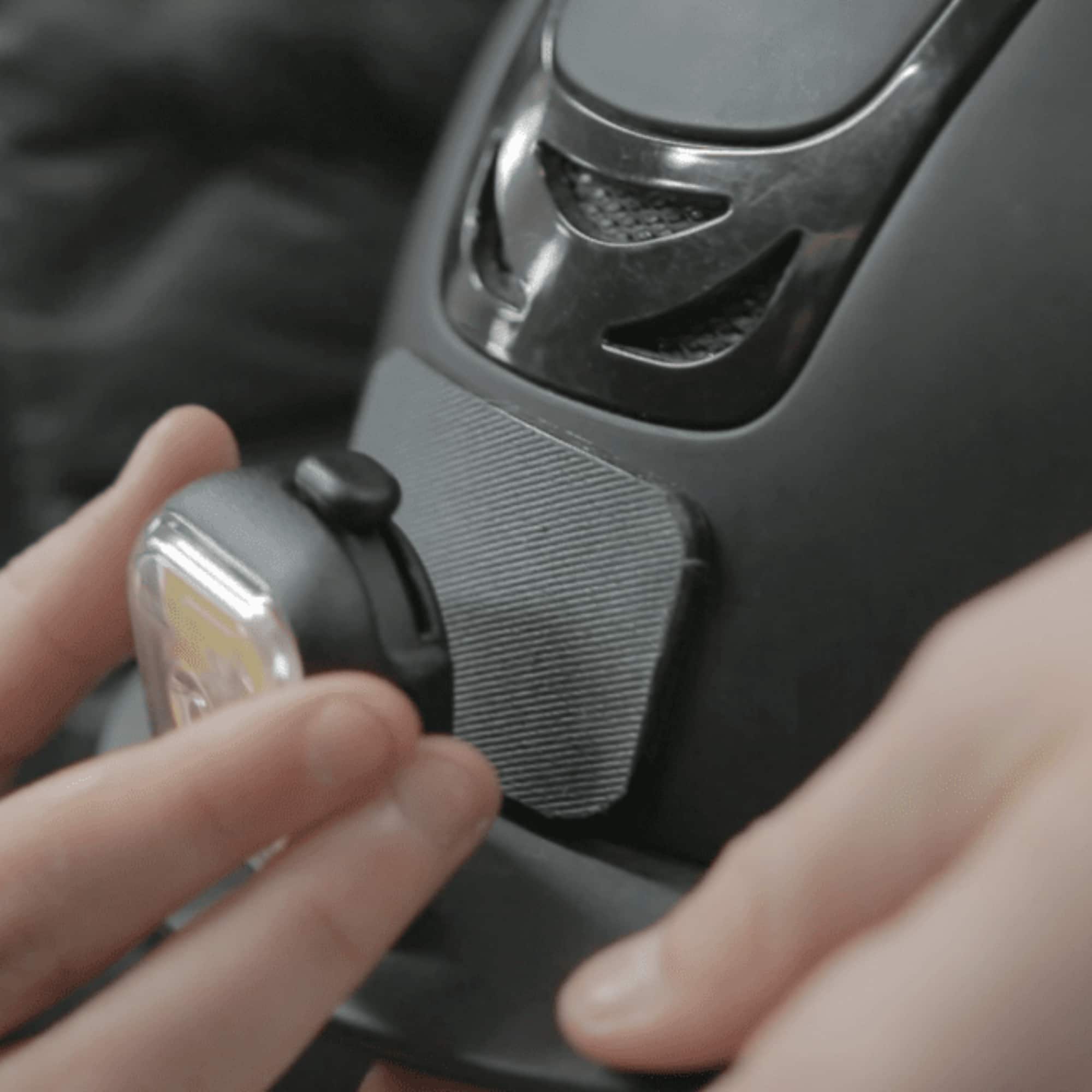 Mit dem praktischen Befestigungspad von Meolinq lässt sich dein Light 01 sicher und einfach am Helm anbringen.