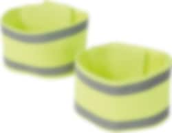 Det här är ett elastiskt reflexband som även kan användas som arm eller benreflex på människa, i neongul varselfärg med två reflexränder.
