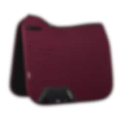 Eine klassische und preiswerte bordeauxrote Dressurschabracke aus Baumwolle mit hoher Widerristfreiheit und weichem Bambusfutter, das für guten Komfort und Feuchtigkeitstransport sorgt.