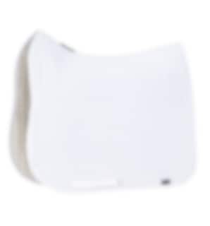 Schlichte und stilvolle weiße Dressurschabracke von Equiline, gefüllt mit 900g Watte. Die Schabracke Quadro ist mit kleinen Quadraten gesteppt.