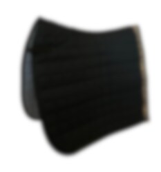 Diese stilvolle schwarze Dressurschabracke ist mit großen Quadraten (5x5 cm) gesteppt und hat zwei Zierkordeln in Schwarz und Sand. Die Schabracke verfügt außerdem über ein flaches Band in Leopardenmuster, das der Schabracke das gewisse Extra verleiht.