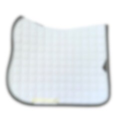 Super elegante weiße Dressurschabracke Octagon von Equiline. Diese weiße Octagon-Dressurschabracke hat eine dunkelblaue Kante, eine kleine silberne Paspel und einen dickeren Naht aus Silber/Marine/Weiß, die diese Schabracke zusammen zu einem echten Highlight machen. Die Octagon Dressurschabracke besteht aus einem stoßdämpfenden Material mit dem Air Control System, das eine hohe Atmungsaktivität bietet. Die Dressurschabracke hat eine extrem gute Passform, die viel Platz für die Mähne bietet und mit 900 Gramm Watte gepolstert ist. Die Schabracke besteht aus allergikerfreundlicher Baumwolle und ist so behandelt, dass sie beim Waschen nicht eingeht. In vollem Umfang erhältlich..