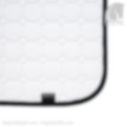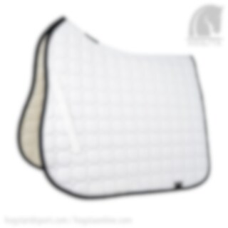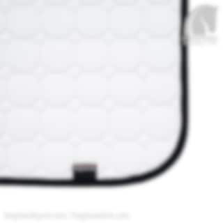 Schöne Dressurschabracke Octagon von Equiline. Weiße Dressur Schabracke mit schwarzem Kantenband. Die Equiline Octagon Dressurschabracke besteht aus einem stoßdämpfenden Material mit dem Air Control System, das eine hohe Atmungsaktivität bietet. Die Dressurschabracke hat eine extrem gute Passform, die viel Platz für die Mähne bietet und mit 900 Gramm Watte gepolstert ist. Die Schabracke besteht aus allergikerfreundlicher Baumwolle und ist so behandelt, dass sie beim Waschen nicht eingeht. In vollem Umfang erhältlich..
