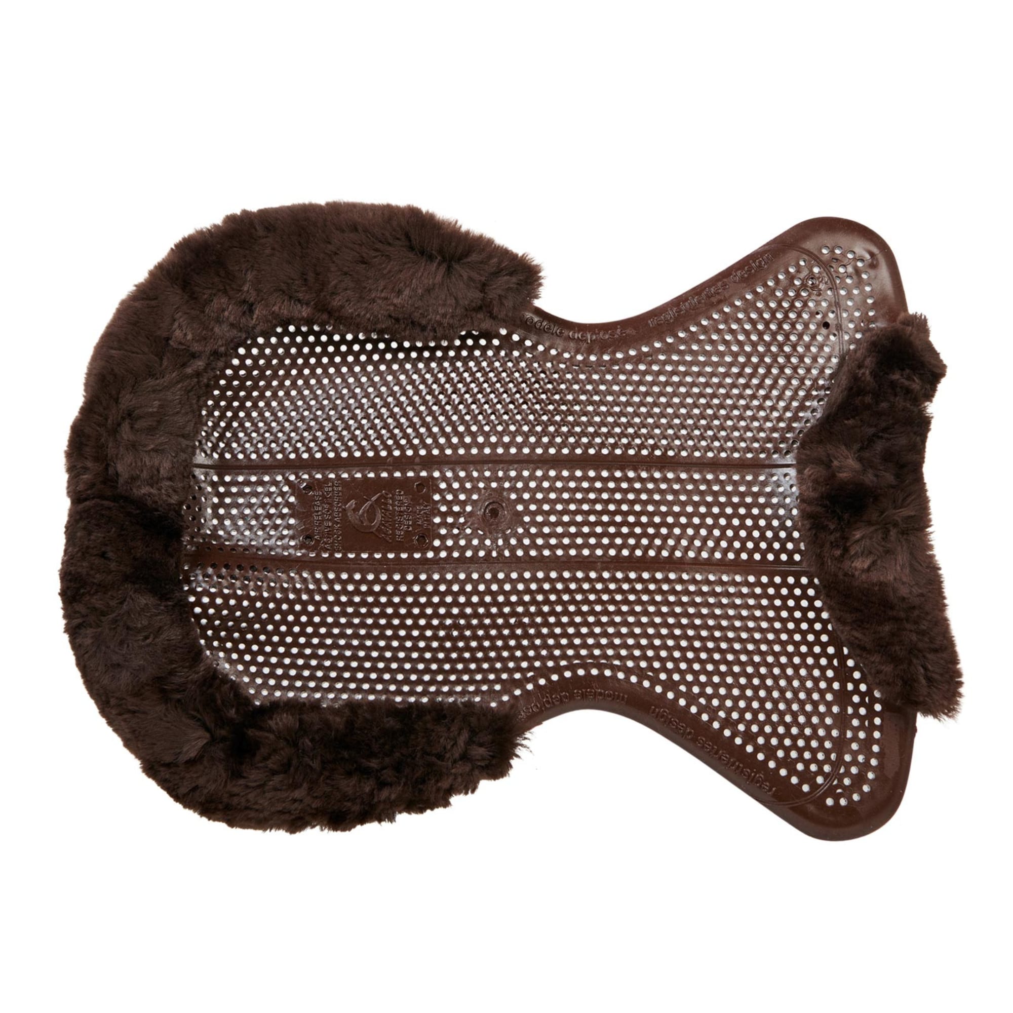 Das braune Gelpad von Acavallo mit Lammfellrand bietet eine effektive Stoßdämpfung und verbessert die Stabilität des Sattels. Das rutschhemmende Gel hält den Sattel sicher in Position und verhindert unerwünschte Bewegungen nach vorne, hinten oder zur Seite.